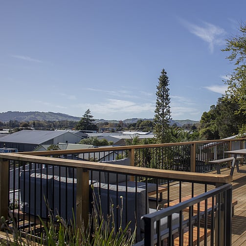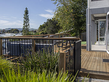 A bright, modern retreat with ample windows flooding the clean, contemporary interiors with natural light. Enjoy 180° views of downtown Cambridge and Maungakawa from the spacious deck, ideal for al fresco dining.